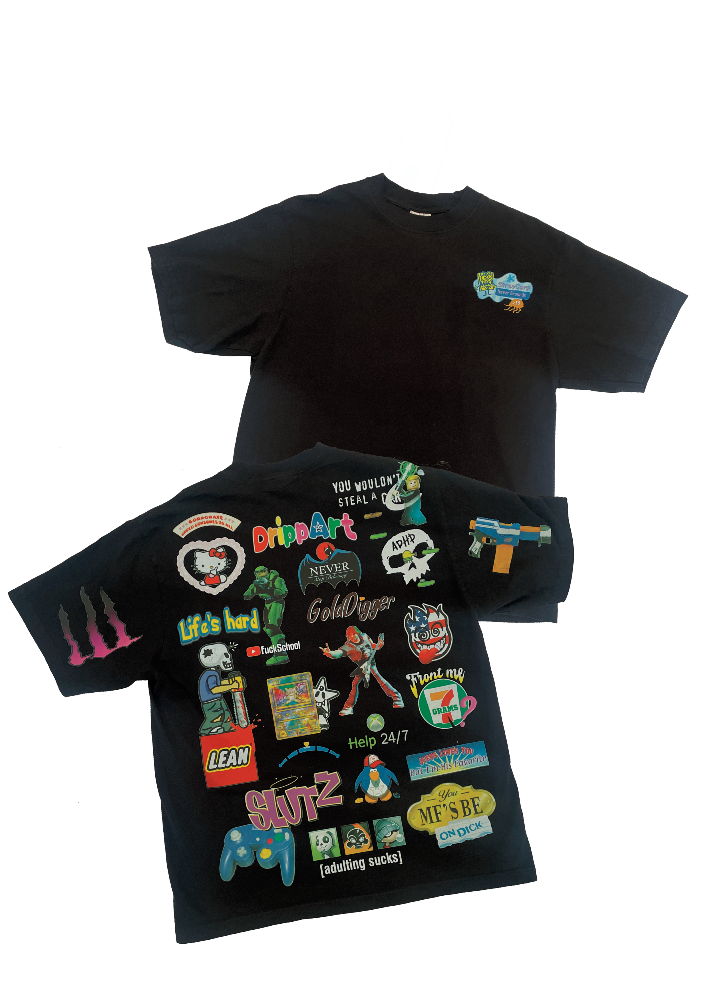 • Around 28 different designs focused on 2000s nostalgia featuring items, brands, and logos we are all familiar with but flipped with adult themes
